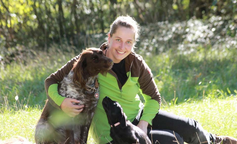 Hunde: Münsterländer Hündin Bayala und Labrador Retriever Hündin Aisis